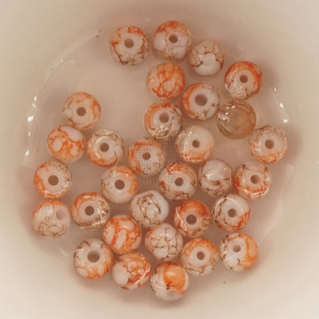 Orange-Brown streaks on opaque white. Off-white paint spatters Glass