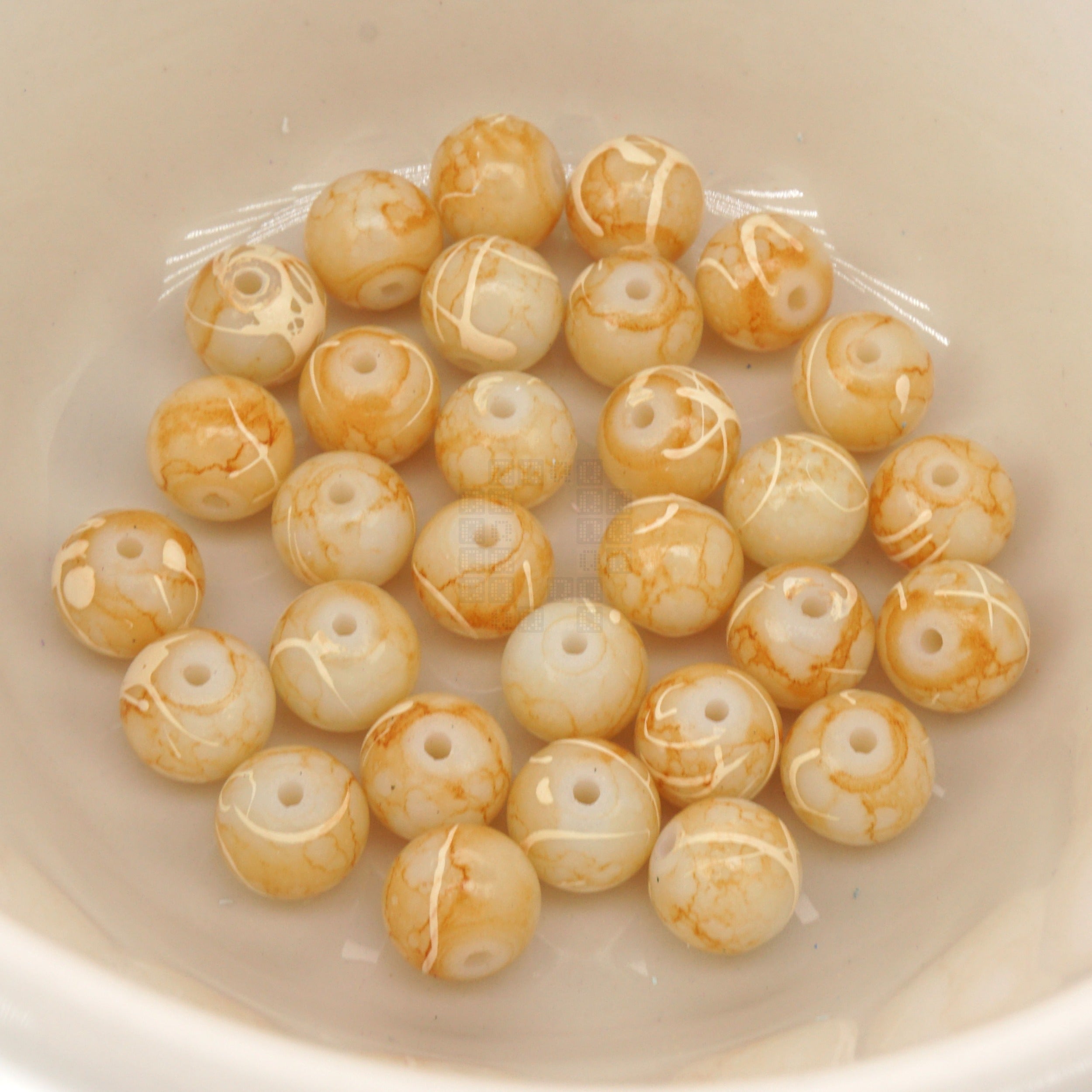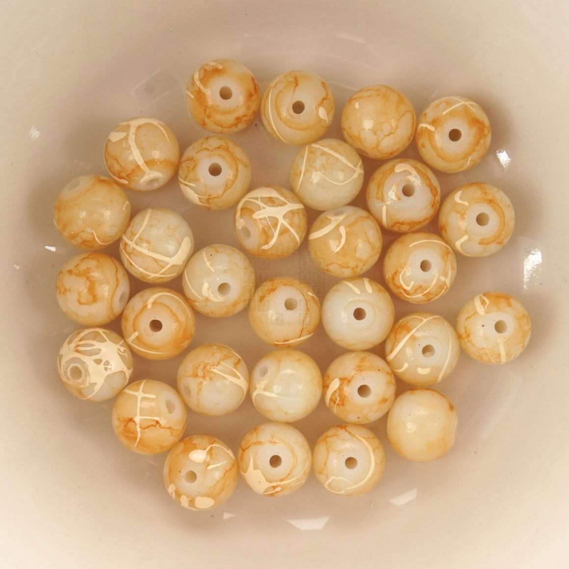 Color Caramel Color on frosted white with Off-White Swirls