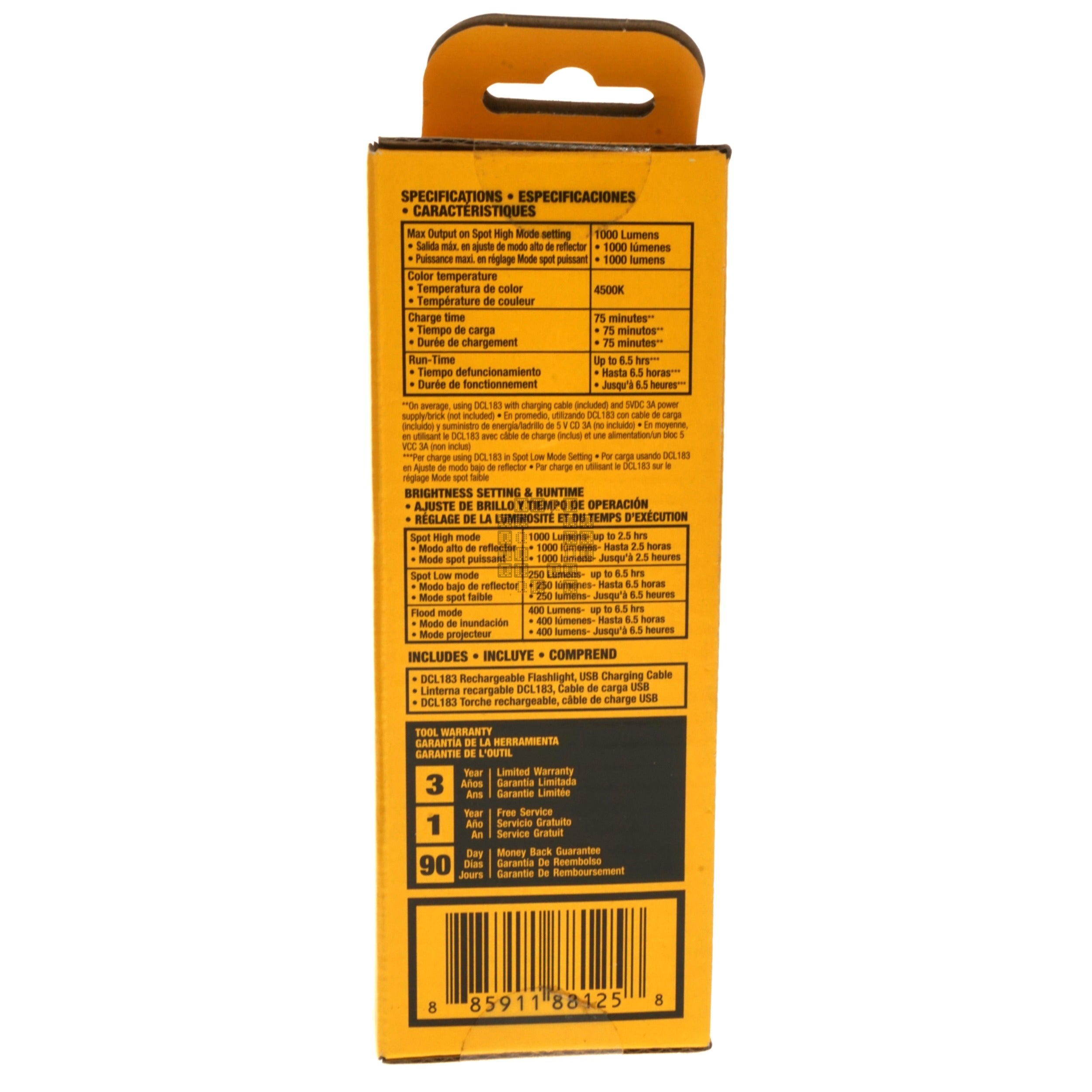 Brightness 1000 Lumens (Spot High Mode)