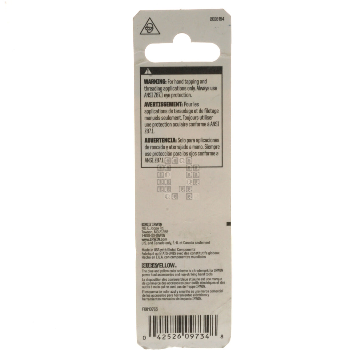 Notes New. Genuine Irwin Die.