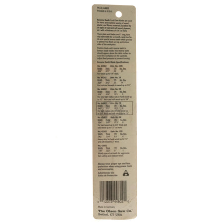 Contents One (1) Package of twelve (12) scroll saw blades