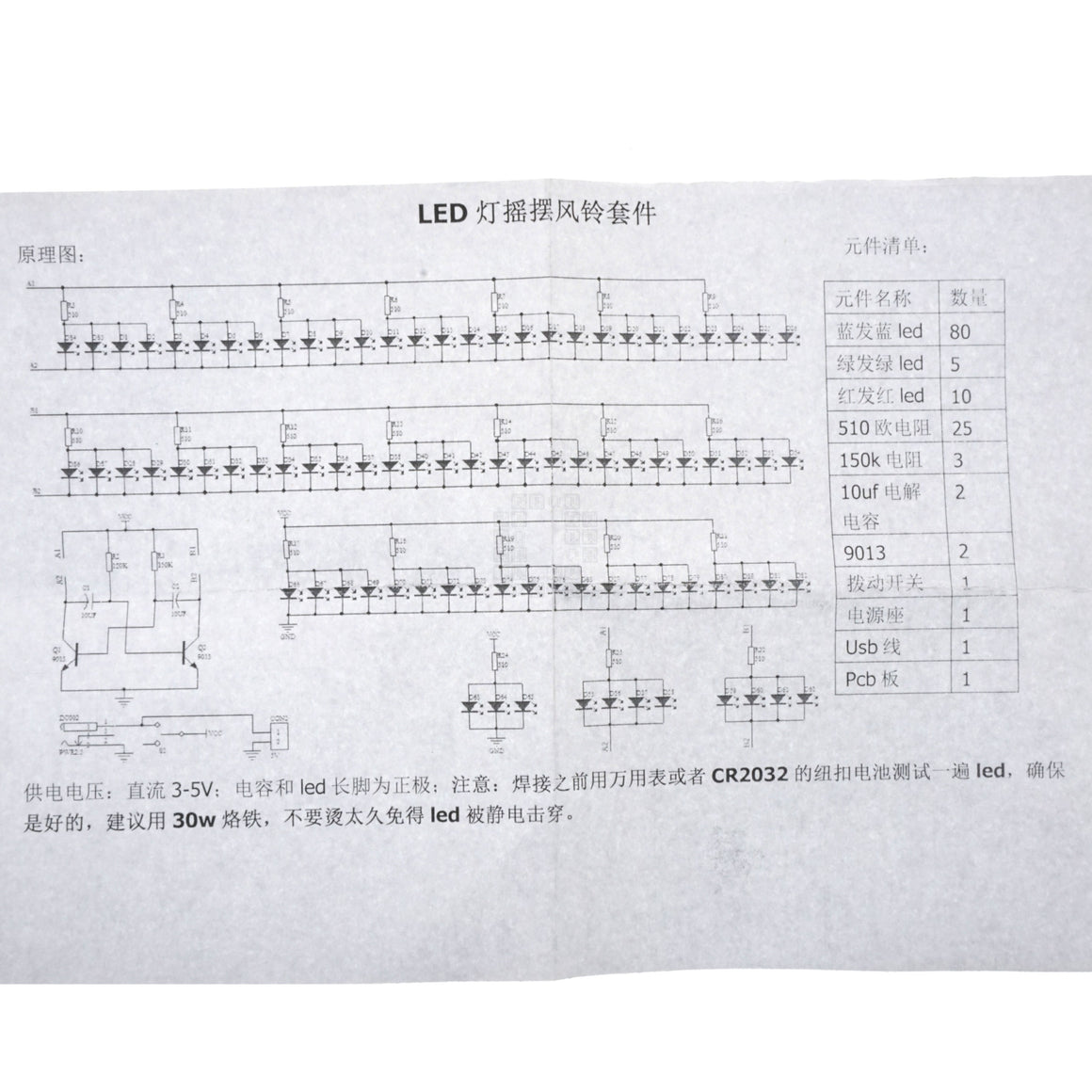 Note: Kit says 3-5VDC, but Blue LEDs require 4.0-4.5V to turn on!